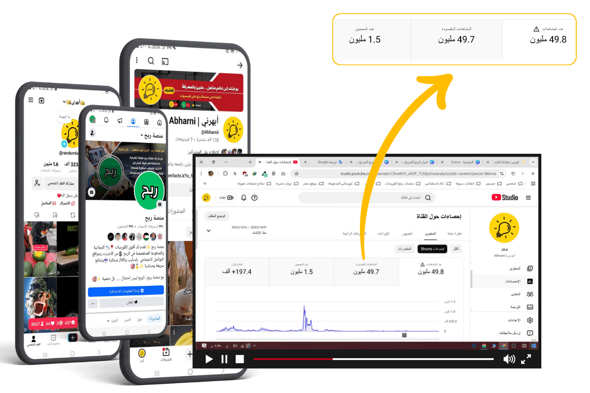 هذا المسار يمكنك من إتقان صناعة اي نوع من انواع المحتوى باحترافية عالية والربح من المشاهدات بدون ظهور حتى لو كنت مبتدئ ويتضمن :